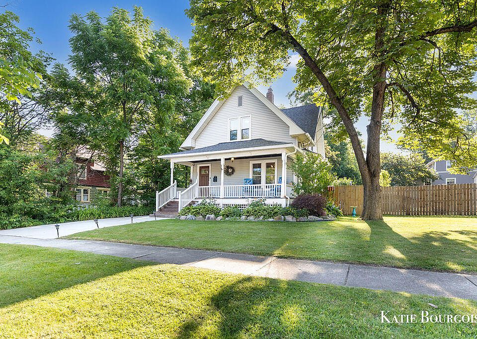Charming 1920s home in the heart of downtown Rockford! Thoughtfully updated with 3 beds, 2.5 baths, including a spacious primary suite with walk-in closet and remodeled bath. The newly finished basement adds extra living space, bedroom with egress, and full bath. Kitchen with granite and newer appliances. Updated mechanicals, newer windows, heat tape on north side of house, covered gutters, 2-level deck, and sealed porches. Bonus heated/AC loft above oversized garage. Whole-home central vac. Bright, neutral interior and fiber internet. Walk to shops, restaurants, parks, and the White Pine Trail! Enjoy everything that Rockford has to offer from the Farmer's Market to concerts and festivals. Any offers received will not be viewed until after 12:00 PM on Tuesday, July 15.