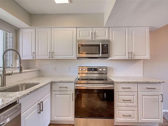 BACK ON MARKET! Outstanding location, fully remodeled in 2017 and ready to move in! This townhouse in tucked away in the beautiful community of Olde Towne in Aurora. Front door, kitchen & 2nd floor secondary bedroom window open to a serene low traffic green space with mature trees & plenty of shade. Kitchen includes tile floor, granite counters, white subway tile backsplash, brushed nickel hardware, undermount stainless sink, brushed nickel pull down sprayer kitchen faucet, large kitchen window sill and stainless appliances. Kitchen opens to the dinette area & family room with balcony, wood fireplace with tile surround. The main floor also includes a half bath w/ pedestal sink. A spacious vaulted master and secondary bedroom are located upstairs plus a combo bath with access from hallway or master bedroom. Bathroom updates include new vanities, lights & tile floors. Newer carpet, paint, interior doors + hardware and windows. Newer stackable washer/dryer in utility room of unfinished basement/garage space. Attached 1 car garage w/ private stairs leading up to unit. Great central location close to Aurora Hills Golf Course, Fitzsimons Medical Center, Anschutz Medical Campus, with easy commute to Downtown Denver, DIA, DTC & Cherry Creek. HOA includes snow removal, trash, water, sewer, exterior maintenance & grounds maintenance.
