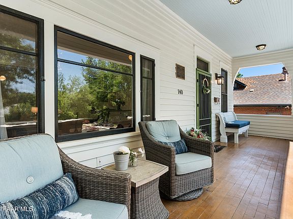 The inviting front porch is just the window to the charm of this remodeled historic gem in the heart of Prescott--just blocks from iconic Courthouse Square! This beautifully restored home offers thoughtful modern updates while preserving its historic charm. Over $100K in improvements, including a new roof, updated plumbing and electrical, fully remodeled kitchen and baths, attic conversion with A/C, and custom baseboards to match original trim. Enjoy refinished wood floors, antique-style cabinetry, shiplap accents, and polished vintage hardware maintain the home's authentic character. Professionally landscaped front and back yards include pavers, artificial turf, and expanded parking. and private backyard create perfect spaces to relax or entertain. Bonus: there's still a spacious loft are