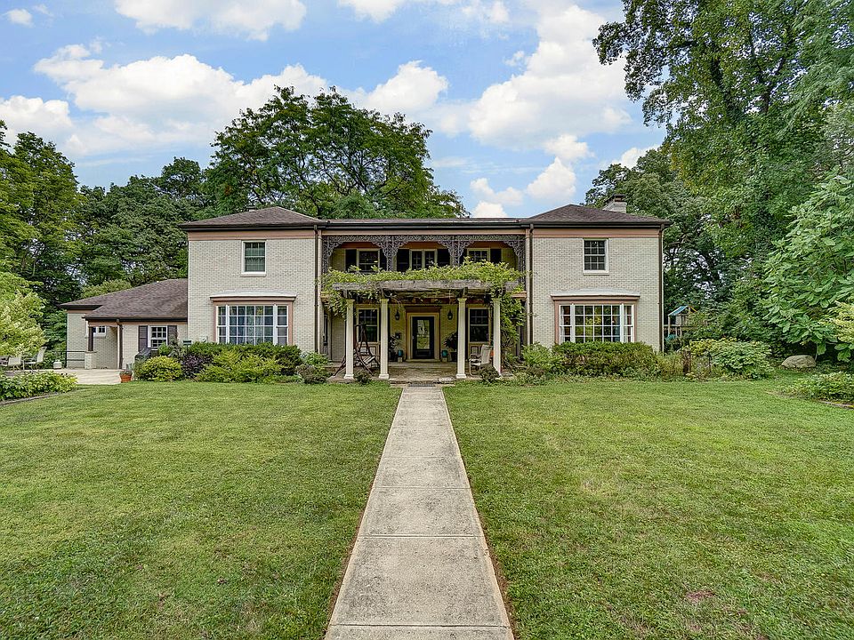 Own a piece of Troy history!! This prestigious home on the hill was a wedding gift to Marcia Hobart Howell in 1945 and has the original circus themed hand paintings on the basement walls. It is a totally poured concrete home and built to last! Enter into this magnificent but comfortable home to an open foyer with original iron curved staircase to the huge bedrooms and sewing room upstairs including the master with original hand painted wallpaper in the dressing room. On the first floor is the front to back family room with decorative fireplace and parquet flooring, a dining or sitting room with a beautiful view to the back, remodeled eat-in kitchen with cherry cabinets and quartz counter on the island; the stunning library/den/office with wall to wall bookcases and fireplace. Updates include kitchen, boiler and roof in 1999; patio, remodeled bathrooms, pergola, replacement windows, refinished floors, paint. This is a grand home for entertaining, lots of privacy - adjacent to Overfield Preschool and the Hobart Urban Nature Preserve - with a comfortable feeling for all. You must see this home to appreciate it!!