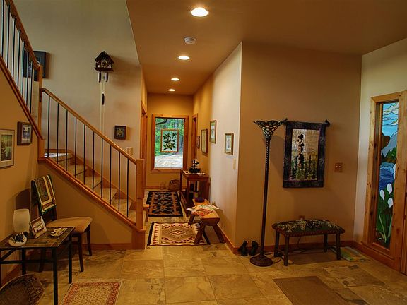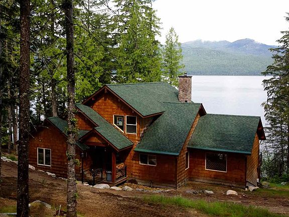 170' ff lake frontage in distinctive Huckleberry Bay. Enjoy the Priest Lake lifestyle in a well planned 4 bedroom 3 bath custom Northwest Lodge home with 3888 sq ft of exquisitely finished living area. Master suite on the main level. The floor to ceiling masonry wood burning fireplace was built by master craftsmen. Huge entertainment spaces to enjoy with friends and family. Granite countertops and custom cabinetry combine with the upscale appliances in the gourmet kitchen. 4 propane gas fireplaces provide h