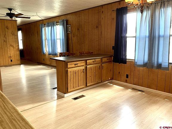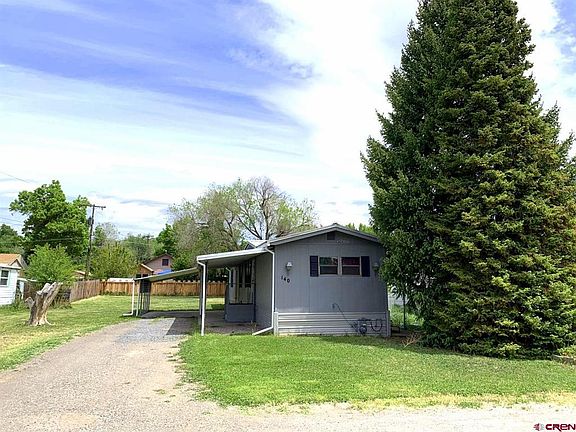 Check out this affordable and ready-to-move-into home! This property offers a clean and bright 2 bedroom/1 bath manufactured home sitting on a deep lot with maintained lawn and a private feel, all located in the heart of Cedaredge. Close to all amenities, the convenient location is near the Surface Creek Walking Trail and schools. The home has fresh exterior paint, a brand new roof, new bathroom flooring, new garbage disposal, ceiling paint, and an all-around freshening up. Carpets have been steam cleaned. Good kitchen storage and pantry space, with an open living area. Carport plus covered porch, and a storage shed in the back. Partially fenced yard with room for a garden. Welcome home!
