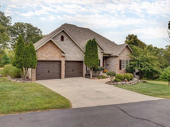 Extraordinary Showpiece with Country Cottage flare has the coziest ambience to welcome you home! Impressive split floor plan offers 4BR, 3 Full Baths, Formal Dining Rm, and Formal Living Rm. Kit/Din has pantry w/pull outs among many other cabinets w/pull outs, new quartz counter tops/new kitchen sink/new faucet/new appliances, under counter lighting, custom tile backsplash and more. Second Living area offers built in shelving on each side of the beautiful stone fireplace, offering a most relaxing aura. Huge master suite exits to covered deck, master bath has jetted tub, separate shower, spacious vanity and walk in closet. Three BR's on opposite side share 2 full baths (one being a Jack and Jill bath), great set up for family and guests. Gorgeous maple hardwood floors, crown molding, plantation shutters, intercom sys, security sys (reserved), water softener, plumbed for central vac, so many extra's to appreciate. Ideal laundry with cabinets/sink/new quartz counter top. This cozy home has 3 exits to the large covered deck great for entertaining, and steps down to a 2nd patio with fire pit. The 2 car garage has two separate storage rooms across the end, and lots of floored attic storage. Double door opening to heated and cooled John Deere Room makes for a great workshop. Enjoy this wooded 3/4 acre of peaceful serenity with an abundance of wildlife, beautifully landscaped, front/back sprinkler sys, three enclosed raised gardening beds, on large corner lot just a short distance to one of the many subd. amenities offering creek access and fun filled entertainment. Saddlebrooke Subdivision is conveniently located only 10 minutes to Branson and 30 minutes to Springfield. Amenities include: swimming pool, children's play area, tennis court, basketball court, pickleball, walking/bike trails, multiple pavilions/park/creek/water access areas, common area, and clubhouse. All this within the prestigious Branson Schools. Welcome home to your own tranquil peace of paradise!