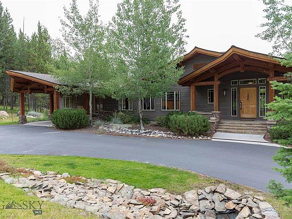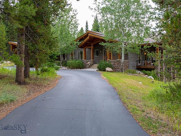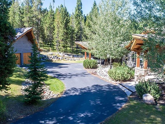 Stunning architecturally designed one-owner home sits on 4.54 acres located just minutes from Town Center in a private and quiet setting. The home was designed for easy living and entertaining. The spacious living room features a beautiful stacked stone floor-to-ceiling wood-burning fireplace with large windows and wrap-around decks, expanding the living space. The open kitchen and dining area were made to accommodate friends and family with a great eat-in nook, large bar for seating and custom made round dining table situated next to its own fireplace. The main level also features a butlers pantry, large laundry room, powder bath, and master suite with private patio. The lower level walk-out features a junior suite with full bath, bunk room, 3/4 bath, family room with wet bar, and ample amounts of storage. The detached 2-car garage is heated with additional shop space and features a private upper-level guest space with kitchenette, 3/4 bath, and custom sauna. Bring your horses!