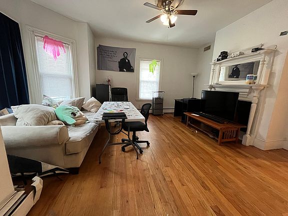 Sunlit 4 Bedroom apartment with two bathrooms has a huge living room with enough space for multiple couches and and a table. The eat-in kitchen has good cabinet space, a dishwasher and an entire pantry. Hardwood floors throughout! The private porch off the back is great for entertaining or enjoying the nice weather in the spring and summer. With easy access to the orange and green lines, this apartment is perfect for commuting. A short walk to the grocery store and nearby restaurants and it makes for a perfect home. Laundry in unit! Don't miss out! 12 Month lease 9/1/2025 start date