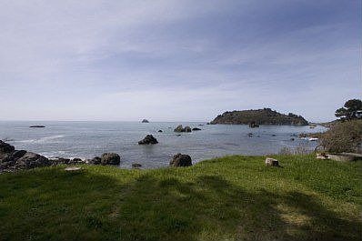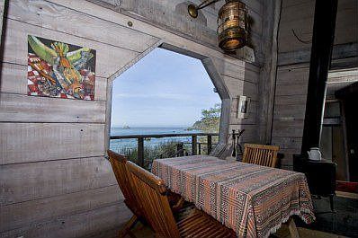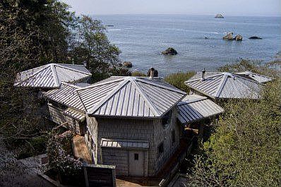 Absolutely stunning, private, beach front property with a custom home known as the Roosevelt House. Three hexagonal living areas connected by glass breezeways all wrapped around a center island deck make this the ultimate beach getaway. Classy, eclectic, fun, with natural woods for an amazing indoor and outdoor living experience. Three private acres with easy beach trail, the most remarkable views of the beach, rocks, sea lions and white water. Views of the creek with waterfalls running along the two master bedrooms. Catch a sea bass or comb your beach for great sea finds. Only a half days drive up the coast from San Francisco. When traveling, the owners rent the property for $3,000 per week. Truly an experience of sight, sounds, smell and feel of the pounding surf at your feet. To get the best sense this property has to offer, see www.140scenic.com
