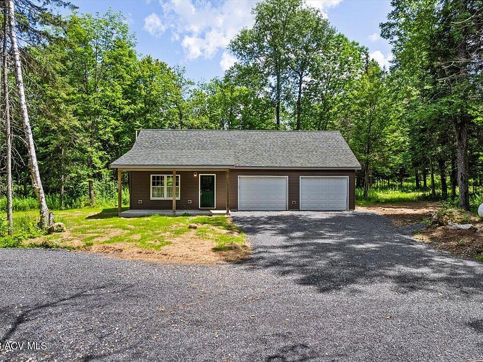 Adirondack Lake Rights Cabin - Centrally located cabin tucked within the trees on 2.5 acres, yet a short walk into town and to your deeded access on Adirondack Lake and shared dock. Built in 2020 and currently a 1 bdrm, 1 bath with an attached heated 2 car garage. Interior completed by Seller, can be used as is or renovated using approved plans to convert the garage into living space including an additional bedroom and bath. Close access to many hiking trails, whitewater rafting, and 20 minutes from Gore Mt.