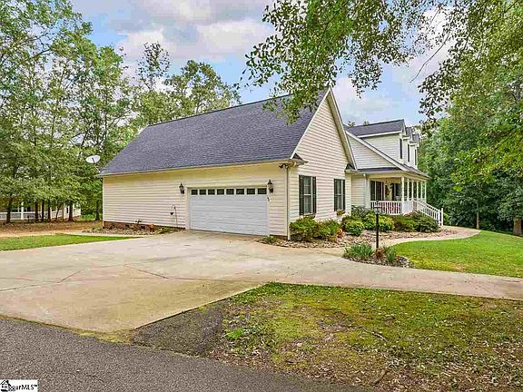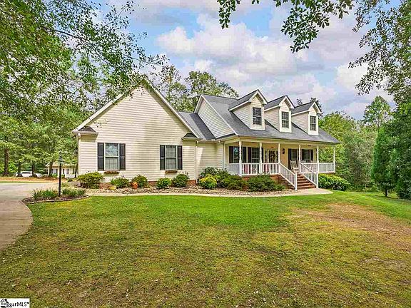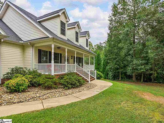 Just imagine the peace you will feel rocking on the thirty-four foot long, brick front porch of this gorgeous hardy-plank sided home! Quiet and tranquility can be yours at this home! Inside you, will find a plethora of recent upgrades and updates! The open concept living room, kitchen, dining room, and sunroom is absolutely inviting! It is the best place to entertain! The kitchen is the absolute star of the show! Custom cabinets, stainless steel apron sink, exposed shelving, rock backsplash, stainless hood, wall oven, built-in microwave, massive island with bar seating, pendant lighting, and quartz countertops make this a dream kitchen! Gorgeous solid wood hardwoods span through the main living areas. Trey ceilings in both the living room and the dining room, and crown molding throughout this space, as well! A gas log fireplace has three sides exposed, and will be lovely this winter! A sunroom extension off the living room has plenty of windows and overlooks the private, wooded 1.65 acre lot. A very large walk in pantry has plenty of room for food, and all of your household necessities. The master suite has a large walk in closet, marble floors, marble shower with seat, linen closet, and dual vanities. A separate laundry room has marble floors and cabinetry for additional storage. Split floor plan. A bathroom with dual vanities and tub/shower combination separates the secondary bedrooms. One of the bedrooms has a closet so large, it is almost the size of the bedroom itself. The side entry garage has a concrete ramp leading inside. A storage closet in the garage with tile flooring houses the central vacuum system. Outside there is a 16x14 outbuilding that remains with the home. Crawl space is tall enough to walk in. Other features include vinyl porch rails to help keep maintenance down, river rock in some beds, new HVAC in past 30 days per seller, recessed can lights everywhere, soft close cabinets in the kitchen, pocket door leading to pantry, massive attic that could be finished space, and a coffee bar/serving bar area in the kitchen! Don't wait on this luxurious, well appointed home! The home next door is also for sale (150 Sellars Drive), if you have family that would like to live close by. District One schools. Close to Greer, Spartanburg, and Greenville! Beautiful and safe area to live in! Come enjoy watching deer and other wildlife in your yard. Plant a garden. Just breathe and love living in your own oasis! Home is accessed via deeded easement (paved). Additional land is available. Seller is a licensed SC Realtor.