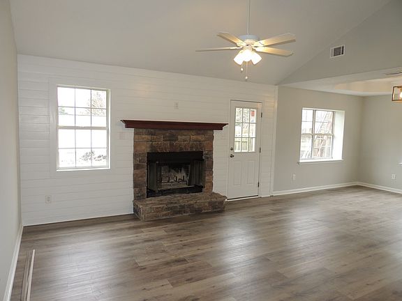 TOTALLY REDONE--COMPLETE RENOVATION. All brick 3BR/2BA ranch plan on .51 acres. New LVP throughout main living area, laundry and baths. New carpet In BRs. New light fixtures throughout. New Kitchen to include new stainless steel appliances, countertops, cabinets with lazy susan and pull out trash and fixtures. Pull down cookbook tray in kitchen and a chalkboard wall. Tray ceiling in breakfast/DR. Woodburning stone FP in vaulted GR with shiplap on exterior wall. Barn door on laundry with shelf. New fans throughout (in all BRs and GR). Wide window sills. MBR w/tray ceiling and walk-in closet. MBA with double sink vanity, linen closet, ship lap on sink wall and new tiled tub/shower. New ADA toilets in both baths and new tiled tub/shower in both baths. Framed mirrors to be hung. Freshly painted. Some handicap features, i.e. wider doors and concrete ramps at doorways. Fully fenced w/two double gates. New front and back doors. Storm doors. New garage door. Shed. Mature trees.