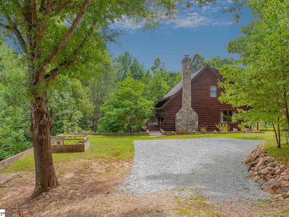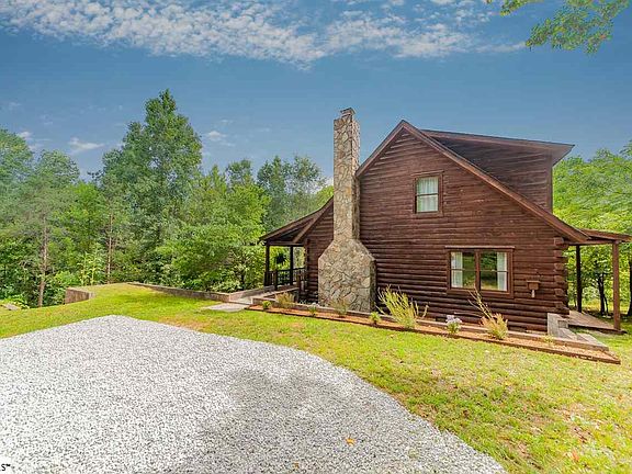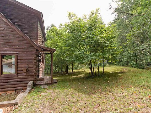 Tranquil, serene, peaceful...choose your own adjective to best describe this one-of-a-kind log-cabin living only minutes from charming downtown Travelers Rest, the Swamp Rabbit Trail, Furman University, and only a dozen short miles to award-winning downtown Greenville! The log interior and exterior; the loft with its rich, knotty-pine, solid-wood floors overlooking the large stone fireplace and 2-story chimney; the stunning, solid-wood beams and hand-crafted concrete-and-stone kitchen countertops; the six wooded acres and small creek...whether on a cold, snowy, winter night or a star-lit, firefly-filled summer evening...all of it will warm your spirit and your soul. Plenty of room for blueberry bushes and garden. Enhance the experience by watching the wildlife...deer, turkeys, hawks, and other furry and feathered friends of the forest...from the expansive front porch. This property adjoins nearly 20 acres of the SCDNR's State Heritage Preserves with easy access to nature trails and more wildlife. The small out-building and chicken coop convey with the property. Make this home your primary residence, use it for a weekend or holiday getaway, or establish your own bed & breakfast at this unique property. So close...yet so far away.