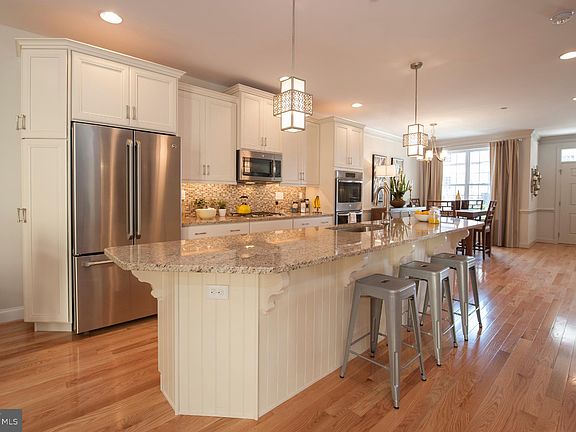 - Kitchen Island, Dining Area, Eat-in Kitchen, Crown Molding, Carpet, Open Floorplan, Wood Floors, Breakfast Area, Family Room Off Kitchen, Chair Railings, Stall Shower, Primary Bath(s)