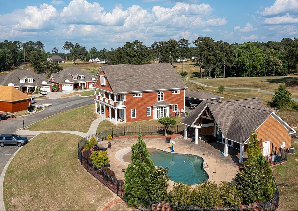 Beautifully maintained town home in sought-after Legacy at Lake Sinclair. Open floor plan first floor with inviting living room with coffered ceiling, dining and gourmet kitchen with high end finishes and appliances. Custom barn doors serve as window treatments when desired for privacy. Step through glass doors onto your private covered porch where you can grill, relax, or take a swim in the adjacent pool. Upstairs the primary suite features a gorgeous cove ceiling, spacious ensuite bathroom with separate tub, shower and double vanities, Glass doors lead from the bedroom to the upstairs covered porch. The second large bedroom also has an ensuite bathroom. A large area between the bedrooms serves as a study or extra sleeping quarters. The laundry room is conveniently located next to the bedrooms. The golf course at The Club at Lake Sinclair is right outside your door! Walk or take your golf cart up to the club to eat at Aubri Lanes, play a round of golf, tennis or pickle ball, or hang out at one of the pools there. A dock and boat slip are included with the unit. Whether looking for a primary residence or second home, enjoy the lifestyle you've been looking for with congenial neighbors as well as your own oasis to relax and unwind.