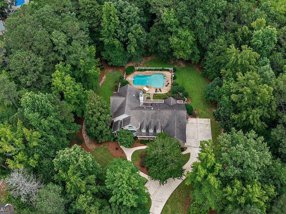 Pure elegance in Fayette County's only gated community Whitewater Creek Subdivision. Tucked away on a quiet cul-de-sac, this custom home has all the space you need on a 1.3 Acre lot. Located in the Starr's Mill school district and connected to the golfcart paths of Peachtree City. Enter the two-story foyer, which features numerous windows for natural light and attractive inlaid hardwood flooring. Pillars flank the gorgeous living room. A beautiful bay window enhances the dining room (turned into a navy library), and it has a convenient butler's pantry. The two-story great room offers ample space for the entire family and features a fireplace with gas logs, a wet bar, and a door to the deck, all while providing an abundance of natural light. This home has the kitchen of your dreams! You will love the cabinets and counter space galore, granite countertops, double oven (one is a convection oven), ice maker, beverage cooler, gas cooktop, large island, and a convenient door to a friend's porch. There is seating for four or more at the breakfast bar, or you can sit in the breakfast room, which features a vaulted ceiling and two skylights. The sunroom could be used as an office or playroom, overlooks the backyard, and has access to the back deck. The laundry room has a closet, sink, and space for a freezer or second refrigerator. There are two half baths on the main level. One is located near the family room, and the other is near the laundry room. The master suite is located upstairs and features a tray ceiling, two walk-in closets, a vaulted master bath, cherry vanities with granite countertops, a beautiful leaded glass window, and a jetted tub. There are three additional bedrooms upstairs. One has a private bathroom and a full walk-in closet. The other two bedrooms feature vaulted ceilings and share a large Jack-and-Jill bathroom. The terrace level is ideal for a media room, teen hangout area, and more, and features a bedroom, bathroom, and access to a covered porch. There are two unfinished areas for storage, one that could be used for a golf cart. Step outside to your backyard oasis and spectacular pool. This Pebble Tech salt system pool is huge! 42' long, 18' wide at the deep end, and 24' wide at the shallow end for the larger playing area. Equipped with Polaris for easy maintenance. The backyard is private with beautiful landscaping.