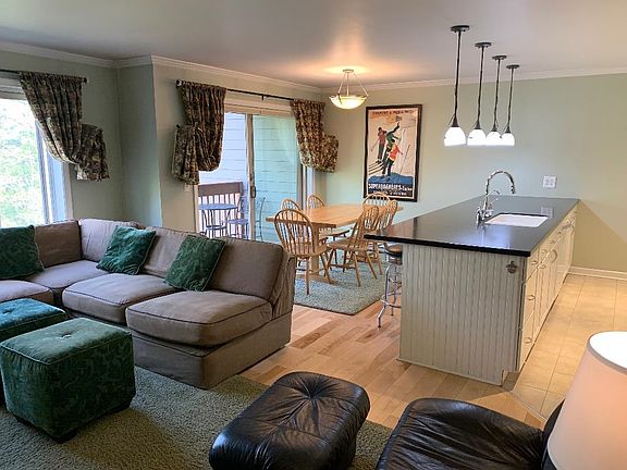 Snow Creek No. 33 Sugarbush Slopeside Condo 2bd/2ba for Sale 2 bedroom, 2 bath, ski-in/ski-out at Sugarbush’s Lincoln Peak. Ski right to the Superbravo quad lift, summer hiking out your door, and stroll to Castlerock Pub or Rumbles for drinks and dinner. Entire condo has been renovated. Remodeled kitchen to open plan with Corian counters, dining bar, double oven, and Hubbardton Forge lighting. Complete makeover of bathrooms, including custom tiled tub and shower enclosures with heavy glass doors, Restoration Hardware storage cabinets, and large hydrotherapy tub with bubble massager. Maple and tile floors throughout, crown molding, and in-unit washer & dryer. Furnishings and kitchen utensils/cookware included, with floor-to-ceiling closet/drawer unit in the main bedroom. Private deck. Scenic shared pool for summer relaxing. Note: The condo is rented this ski season Dec. 1 through April 30 to a wonderful family (their third season renting it). We require that the lease be honored as part of the sale. Buyer will receive pro-rata portion of rent based on closing date ($17K for ski season). Amenities: • Jotul C450 Kennebec fireplace insert • Vermont Verde Marble fireplace surround and custom mantel • Slate hearth • Kohler hydrotherapy Tub • Maple / Tile floor throughout • Exterior siding/insulation • Landscaping/granite stairs & curbing • Furnishings included • Private deck • Firewood, snowplowing, landscaping, exterior included with HO fees.