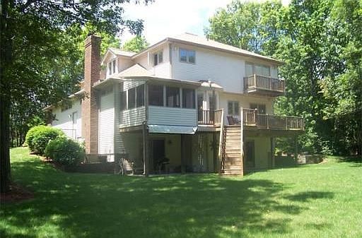 HOUSE BEAUTIFUL: Long lighted driveway leads to this stunning custom contemporary. Brick accented entrance. Fireplaced living rm, open staircase, designer kitchen connects to formal dining rm & fireplaced family room with built-ins . 3 BR,(master suite with jacuzzi) 2 lavettes, 2 full baths. AC, security. Quality throughout: Hardwood floors, Pella windows, Horner Millwork, Jenn-air, coordinated light fixtures, etc. 2 decks, porch, attached 2 car garage. Professionally landscaped 1.6 ACRE LOT.
