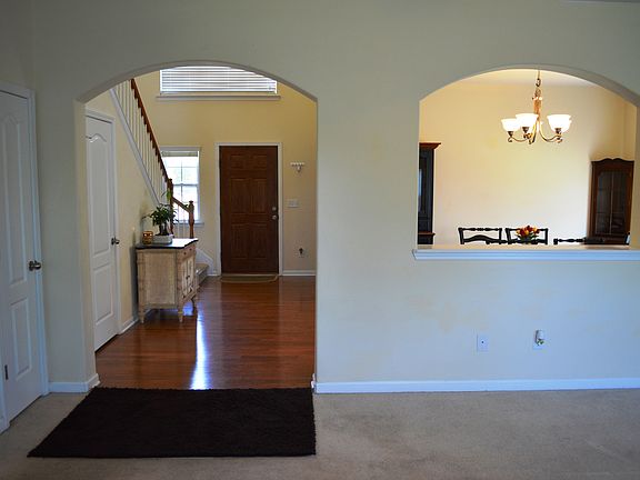 This spacious 2500+ square foot home has loads of features! A majestic two story Foyer greets you upon entering with beautiful hardwood flooring, which is carried through to the Study/Den and formal Dining Room.The Study has a ceiling fan and French doors while the Dining Room boasts loads of room for family dining and/or entertaining. this space also has an opening into the Great Room, making it feel even larger. The Great Room is open to the Kitchen area and has warm and comfy carpeting, ceiling fan and Fireplace with gas logs. A bar area separates the Kitchen and provides a great place for quick snacks or lunch. Warm cherry colored cabinets are featured in the Kitchen with black appliances, electric range and dishwasher. Ceramic tile flooring is used throughout the Kitchen and Breakfast Room. From the Breakfast Room you can access the Patio, walk-in Laundry Room and the two car Garage. Upstairs, there are five Bedrooms. The Master Bedroom is generously sized and features a trey ceiling, ceiling fan, full