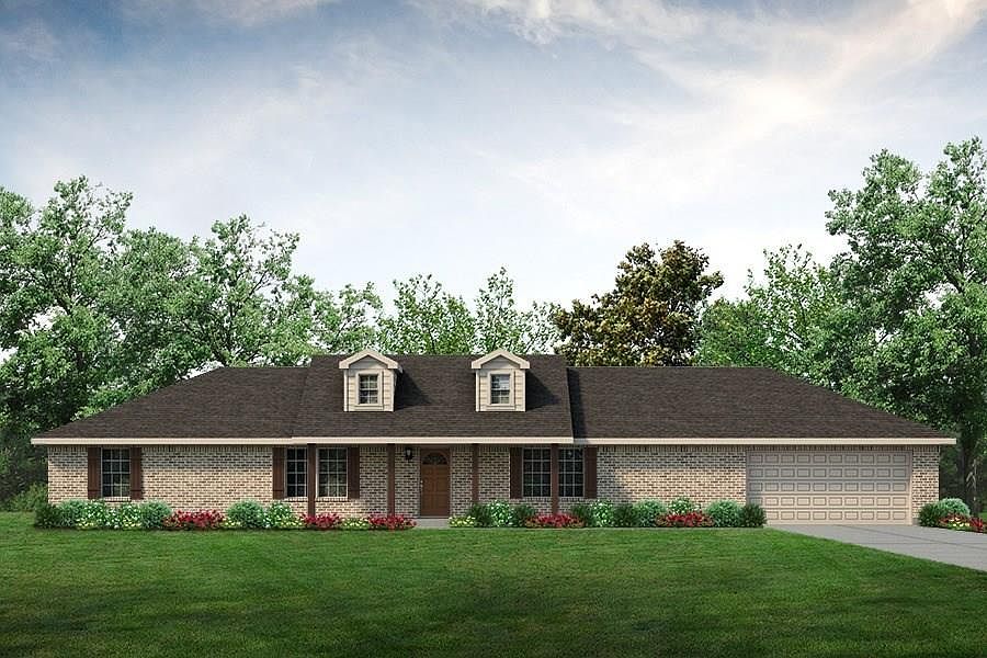 This country-style home offers a place to relax yet entertain. A cozy den, separate from the family room, is located at the rear of the home. The island kitchen connects to the breakfast nook, which is open to the family room. The master bedroom suite, which is split from the secondary bedrooms, includes a garden tub, separate shower, and large walk-in closet. Three additional bedrooms and an additional full bath are located on the opposite side of the home.