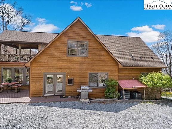 Experience Beech Mountain living at its finest in this stunning home on 1.7 acres with multistate sunset views and the soothing sounds of Buckeye Creek that can be enjoyed from every room in the home. This turnkey retreat is sold fully furnished with luxury pieces and is short-term rental ready. The home features level-entry access with all essential rooms—including the primary suite—on the main floor for convenient single-level living. Inside, rustic charm meets modern elegance with vaulted ceilings, wood accents, and large windows that frame the mountain and creek views. The gourmet kitchen includes granite countertops, high-end appliances and a custom live-edge wood counter. Three fireplaces—one in the main living area, one in the lower-level recreation room and one outside—add warmth and ambiance throughout. The downstairs rec room provides extra space for entertaining or relaxing. Outdoor living includes a private hot tub overlooking the creek, a covered stone patio and a stone fireplace ideal for cozy mountain evenings. Whether dining, entertaining or unwinding, the setting is unforgettable. On sought-after Beech Mountain, enjoy year-round activities like skiing, hiking, dining and more. Optional Beech Mountain Club membership offers access to golf, tennis, pickleball, a heated pool, fitness center and fine dining. This home blends luxury, privacy and income potential in one of the High Country’s scenic settings. Property runs road to road. Home is currently owned in a partnership. Listing is for 100% ownership BUT possible fractional ownership may be available.