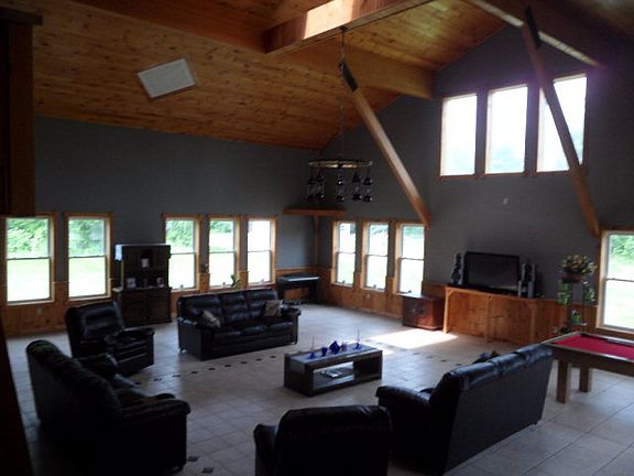 This is a very modern open floor plan, radiant heat and superior insulation for maximum efficiency. The master bedroom can be partitioned off for a third bedroom. It has oil heat or an outdoor boiler.