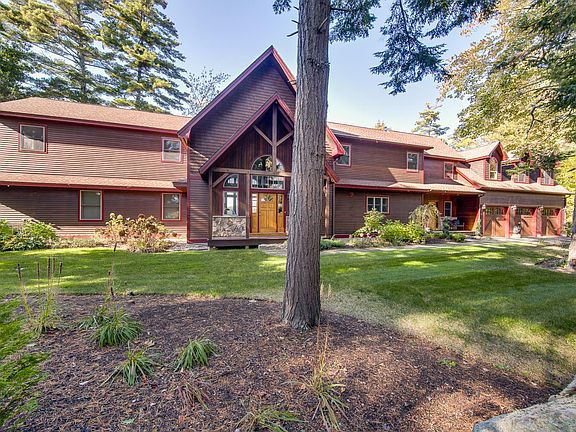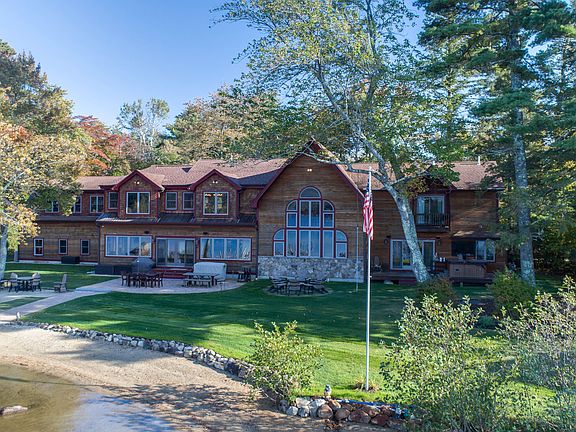 Just 5 minutes off Route 25 sits Sandy Lodge, a beautiful Adirondack lake house on the majestic waters of Lake Winnipesaukee with long distance lake views. This property has .69 acres including itsâ own private island all Southwest facing for spectacular sunsets. The Winnipesaukee frontage is sugar sand beach with 200â of shoreline complimented by a lakeside putting green, screened-in cabana and a massive u-shaped dock. A notable lifestyle piece to this property is enjoying the convenience and luxury of having your main floor one step away from your backyard. Enjoy walking right from the kitchen, living room, master suite and great room out to the backyard and being together with everyone for entertainment versus having a stairway to do so. The main floor is an open -concept and features a large chefâs kitchen with top of the line appliances, granite counters, walk-in pantry, wet bar and a massive center kitchen island with bar seating. Open to the great room which features an open, 2 story wall of windows with wood ceiling accenting the two-story stone veneer gas fireplace. Two master suites compliment this 3-bedroom septic home with plenty of extra rooms for sleeping, two more of which are suite style with their own bathrooms. Complimented by the heated 3-car attached garage, this lake house is move-in ready with a gorgeous landscape to compliment itâs NH lake house look. Town has 5 bedroom home, septic is for 3-bedroom (which is six people, year-round use)