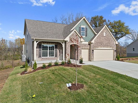Move-In Ready! New Construction by Consort Homes in the rapidly-selling Prairie Bluff neighborhood! This top-selling, 4 BD, 3.5 BA, 3,546 s/f, 1.5 story home showcases todays most desirable features and finishes. This intimate enclave has a single entrance, consists of 3 cul de sacs, backs to common ground, has a walkout bsmt and 3 car garage. The ext is captivating w/a brick-stone facade, shake accent siding, covered front porch, arch shingles and full yard sod. Features inc a dynamic 2-story Grt Rm, 9 ft clngs, laminate plank flrs, gas FP, DR, Main Flr Primary Suite, Lux Primary Bath, 42 inch cab w/crown and hardware, gas c-top, canopy range hood, quartz c-tops, SS appl, large island w/seating bar, wr iron stair spindles, huge Loft/Bonus Rm w/spindled rail, low E windows, Hi Effic Furnace, zoned HVAC and more. Located minutes from the restaurants, shops and activities in downtown Cottleville. Desirable Fr Howell schools. Easy access to Hwy 364. COOL: 14 SEER+