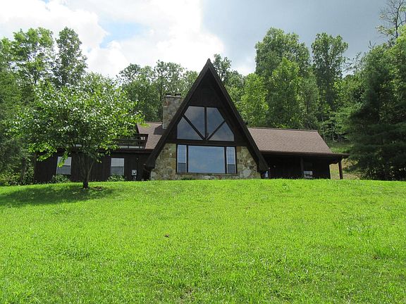 Spacious A Frame 1&1/2 story home situated on 4.06 acres offers 4 bedrooms, 2 baths, Newly Painted Inside and Outside, New carpet has been ordered and will be installed as soon as it comes in. This wood and cut stone sided home is on a secluded lot with a 1 car attached garage and a deck. Master bedroom is on main floor, fireplace in great room and wood stove. Enjoy the quiet serenity of nature with the convenience of being just minutes from schools and shopping. This property backs up to the Daniel Boone National Forest.