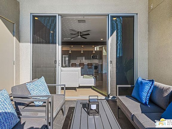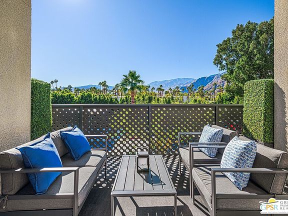 Discover modern luxury and incredible views at 140 The Riv! This 2-bedroom, 2-bathroom condo spans 1,226 square feet and features sleek porcelain tile floors, a stylish kitchen with a spacious island, and owned solar with 10 panels for energy efficiency. Step onto your private balcony and take in the breathtaking South and West views of the San Jacinto Mountain range, or relax in the beautiful community pool and spa, which also offers stunning mountain views. This residence blends contemporary design with the serenity of nature, all within an exceptional community setting. Don't miss this opportunity to make this your desert paradise or turn-key investment property.