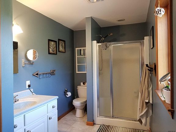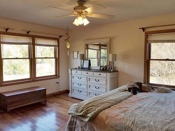Privacy and wildlife! Light and bright great room with cathedral ceiling and skylights for lots of natural light.Master suite on the 1st floor. The 3rd BR is small office, but could be enlarged by taking the wall out between the office and laundry. OR, the 2nd floor attic area is ready to finish and is plumbed for an add'l bath for a 2nd bedroom suite.Finished walk-out basement with family/game room adds to the living space. RADIANT Floors throughout the house and garage. 8 zone heat. Large fenced area for pets. 30 X 40 pole barn can garage an additional 2 cars with room to spare. Enjoy beautiful mountain views during the day and starry skies at night from the wrap around deck. Horses are welcome. Back of property is close to snowmobile trails. Only 6 miles to I87. Excellent Condition 2022-02-03