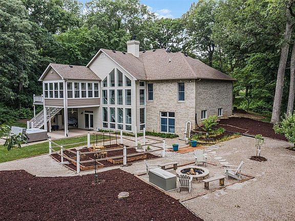 Offering some of the most private, beautiful views in Edwardsville, this custom built four BR home is situated on approximately 2.75 acres. Replete w/updates, you will discover wonderful gathering spaces on both levels, a remodeled kitchen, an executive office, master suite w/remodeled bathroom, enclosed porch, back deck, hot tub, fire pit, & much more! The great room has a vaulted ceiling, a wall of windows & gas fireplace w/built-in cabinetry. The finished walk out lower level has 10 foot ceilings, beautiful crown moulding, wood burning fireplace, wet bar with a wine cooler & refrigerator, & huge bedroom that has a partition that can be removed. Also on the lower level: Wine Room, Workshop & 4th garage space (34x25). The main level garage fits an oversized vehicle. Sprinkler system in front yard. Minutes from the heart of Edwardsville that in the highly desirable Woodlands neighborhood! In a picturesque secluded setting, the house exudes unparalleled elegance inside as well as out.