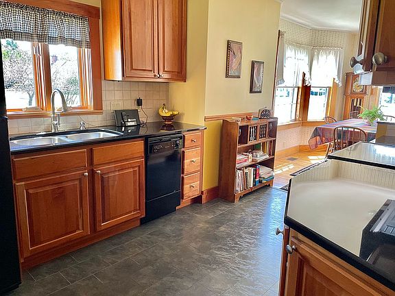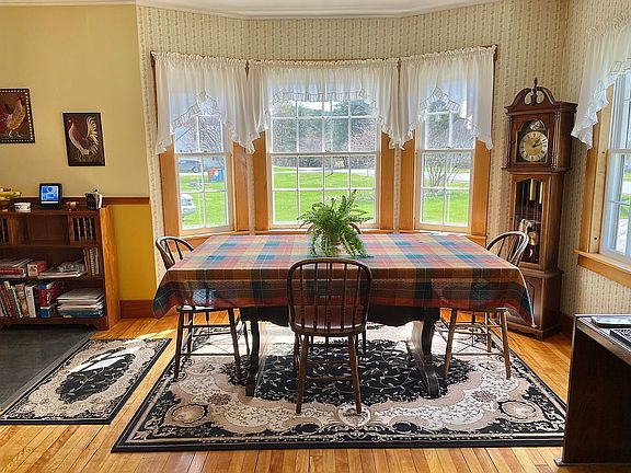 This home was built in 1952, with hardwood (maple) flooring and curly birch woodwork throughout most of the first floor, including built-in bookshelves. The stairs to the second floor are wide-plank, solid oak. The whole home has original solid wood doors, with glass doorknobs, and most light fixtures in the home are also original. The entire home has been fully weatherized, and a heat pump added to the first and second floors. This past winter, the homeowner only used 186 gallons of heating fuel! The kitchen was fully remodeled, stripped down to the studs in 2007. Completely custom kitchen with Cherry cabinets and black granite countertops, new windows and has been impeccably maintained. The first floor bathroom was fully remodeled in 2015 with a full custom tiled shower, flooring, and storage space added. The entire interior of the home was painted within the last five years along with grounded outlets installed throughout most of the house, and the 1st floor bedroom and upstairs carpet replaced in 2016. The upstairs of the home is rarely used, so the carpet is like new!