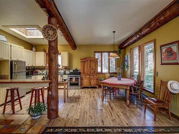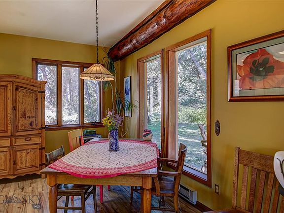 Nestled down on a stunning creek front is a home different from all the rest. Just a mile and a half up Trail Creek Road, off the west side of the beautiful Paradise Valley, it feels like a mixture of New Mexico and Montana. Earth-sheltered on one side and open to the creek and park-like setting on the other. In the summer most rooms open to the outdoors and it's so inviting and cozy in the winter with an abundance of natural light in all rooms. This home is clearly an artist's creation with subtle, inspired touches throughout. One-level living with super high ceilings, log accents, tile floors, great windows, and light...a spacious feel throughout. There is a separate 16 x 16 shop/studio, garden area, swimming hole, and over 400 feet of creek frontage. Nature is yours here. Most of our Montana wildlife pass through from time to time. It is an inviting spot and they know it. The old junipers, the creek, the land...great energy, peacefulness, and total privacy.