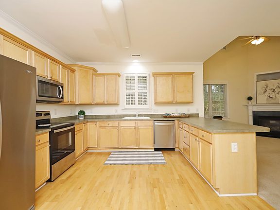 Great Location. This brick townhouse is in the heart of Holly Springs! Open first floor features large eat-in kitchen w/pantry and large family room with fireplace. Living room opens to second floor loft that makes a great office! Two spacious bedrooms; master bath w/garden tub, walk-in shower, double vanity, tile floor. Plantation shutters on most windows . Laminate floors. HVAC installed 2018. New appliances in 2022 Private patio out back. Community has pool . Townhome sits at back of single family home community with NO thru-traffic & plenty of visitor parking. Dining, shopping, Hwy 540/US1 minutes away! Minutes to New Holly Springs hospital