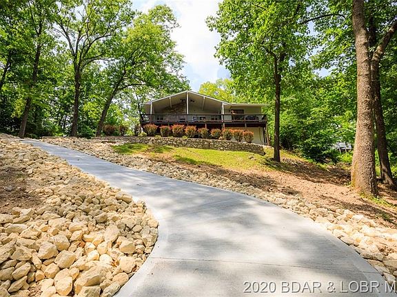 Incredible lakefront home, centrally located by land & sea in Lake Ozark and Marine Max Cove, close to all Lake amenities and completely updated inside & out. Some of the wonderful features include: flat driveway w/ enough room for 10+ vehicles, less than 3 steps into the home, 2 levels of living space, massive Ozark native stone fireplace on both levels, 3 bedrooms and 2 bathrooms on the main level, open floor plan w/ a giant granite countertop to entertain at, hardwood flooring, wine room in lower level with a pre-plumbed bar area, lower level bedroom & bathroom, floating ceiling in the lower level, 272 sqft temperature controlled mud room for plenty of storage or workshop and a new golf cart path to the lake w/ lakeside patio area. New updates include: roof, flooring, paint & trim, granite countertops, master suite bathroom w/ amazing walk in shower, custom LED lighting, refinished late 1800s sliding wood doors, custom pallet walls, and the list goes on. Comes furnished w/ dock.