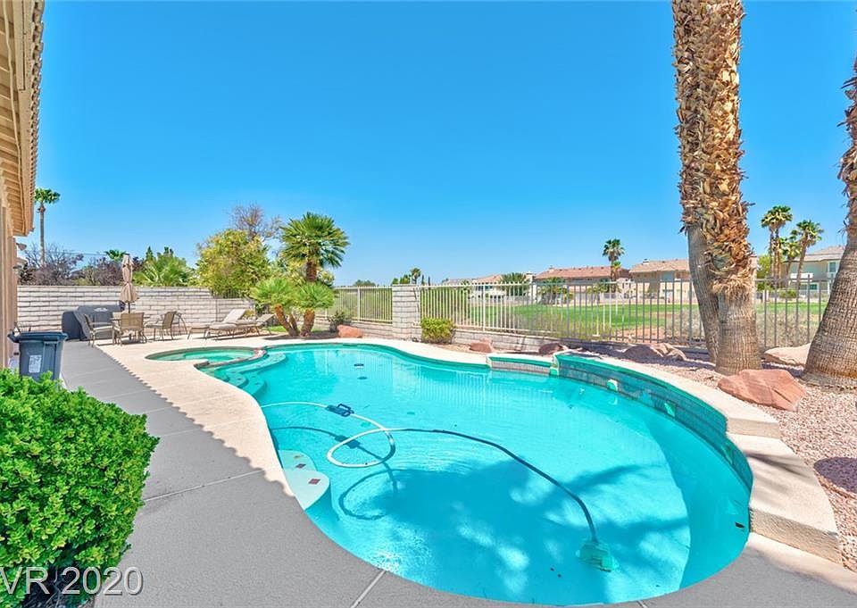 Gorgeous 1-STORY right on the GRAND LEGACY GOLF COURSE! 24hr GUARD GATED! Super quiet area. Relax in your private HEATED POOL & SPA on shady patio, surrounded by PALMS, GOLF & MTN views from family room,master,nook! Sunny ISLAND kitchen w/NEW SLAB GRANITE COUNTERS, large undermount stainless sink, BUILT IN STAINLESS OVENS,STAINLESS fridge,NEW STAINLESS GAS COOKTOP w/downdraft! TILE FLOORS, neutral plush carpet, washable paint,custom window coverings,front load washer/dryer. 6 hi-end ceiling fans, alarm. Huge bedrooms, separated for privacy. XL laundry w/sink.Close to The DISTRICT dining/shopping/parks! TOP SCHOOLS. Pets OK,NO CATS. Avail by 9/1.