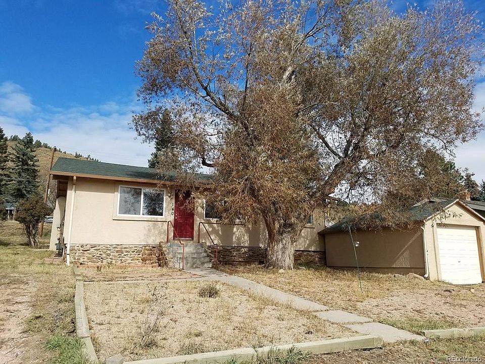 Cute & Quaint Ranch styled home in the heart of Palmer Lake. PL historic Star virtually behind your home! Mountain views galore. wild life. Walking distance to many area amenities including lake & park. Great room concept with laminate floors. Roof & Furnace installed - 2013 Kitchen with newer cabinets, counters, dishwasher. Range/Oven & Microwave are newer too. Needs some updating. Broken pipe (now fixed) caused minor damage to laundry & office - carpet & some sheetrock were removed. AS-IS only. Lots of potential here!