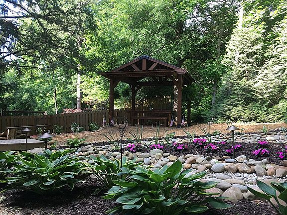 Beautiful street appeal. Beautiful natural landscape. Low maintenance, no grass to mow. Professionally installed LED landscape lighting. New gas range. New gas fireplace logs. New gas installed in the outdoor grilling area. Remodeled powder room with marble flooring, updated lighting, updated sink and faucet. Remodeled Carrera marble fireplace surround. Master closet features a beautiful huge wood sliding barn door. Recently painted interior and exterior. Crown moldings throughout. Customized touches in every room. Screened in back porch/patio area with multiple ceiling fans for afternoon and evening entertainment. For the auto lovers, an oversized 2 car garage features a 12' ceiling which is perfect for an auto lift. This space also has a portable A/C plus heat and dedicated 150A service panel. The 1+ car is very large and has plenty of room for a workshop, projects or hobbies. For pet lovers, the back yard is fenced in with near invisible fence. The kitchen features new glass tile backsplash, all new stainless steel appliances complete with eat-in area which overlooks the stunning back yard.