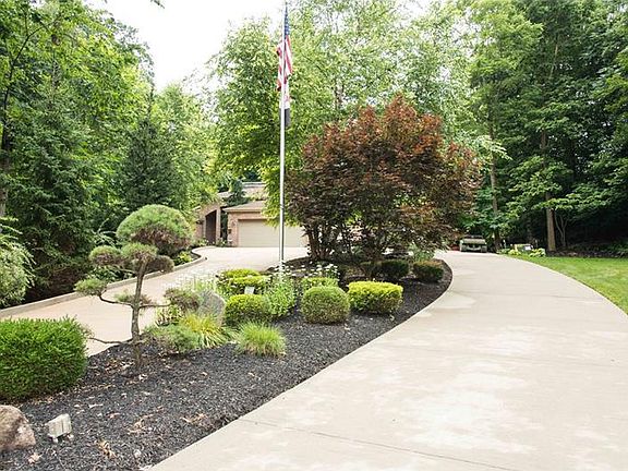 Radiant in-floor heating on main and lower levels upgraded in 2014 Stamped concrete patio Governor's driveway Pella windows & blinds w/roll down screens Cherry doors & trim Water filtration system Wired for music inside and out Master bath 11x11 Top-line appliances Corian & Quartz countertops 9' ceilings Gorgeous Koi pond & double waterfall w/night lighting (fish remain) Attic access above pantry & garage Huge basement w/shelved workshop, full bath, possible wine cellar, possible theater room, possible exercise room. Pantry & garage shelves remain Pantry also has refrigerator & freezer Great room 22' high vaulted ceiling. Oil & Gas Lease and checks will transfer to buyer (no surface drilling)