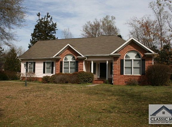 This wonderful home is located just around the corner from Whit Davis Elementary School. Split floor plan features three bedrooms and two baths on the main level and a fourth bedroom with closet or bonus room upstairs including two large closets with shelving plus floored attic storage. The main living area is open and easy to enjoy. Great room with built ins and a gas log fireplace with marble surround. Kitchen is open to great room with a breakfast bar area and breakfast room. Cabinets with pantry area, refrigerator, smooth top range, dishwasher and built in microwave. Master Bedroom has a large walk in closet. Master bath has jetted tub, shower and dual vanity. This lovely home, on a nice corner lot, features brick accents on the front nice landscaping and trees and also has a covered front porch and a screened porch and rear patio to enjoy the backyard.