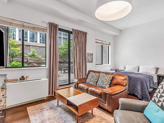 INVESTORS ONLY--Tenant in Place This is the WOW apartment you've been looking for... Designer renovated with high-end finishes featuring a private South-facing 440-square-foot planted terrace. With 11.5-foot ceilings, the space opens up to an oversized, gorgeous open kitchen with new stainless-steel appliances. The bedroom area comfortably fits a queen-sized bed with ample closet space. The purchase also includes a storage unit downstairs for any extras. The oversized windows and huge sliding glass doors pour light into the apartment and give you the perfect view of your private terrace, set up for grilling and entertaining. The fully renovated bathroom with Italian tile and newly finished floors completes this special apartment. Washer/dryer in the unit as well and hardwood oak flooring. Situated right in the heart of Chelsea and just steps from the Village and Meatpacking district, you can have coffee every morning at Eataly and al fresco lunch at Madison Square Park. Walk to just about everything! Pet friendly condo.