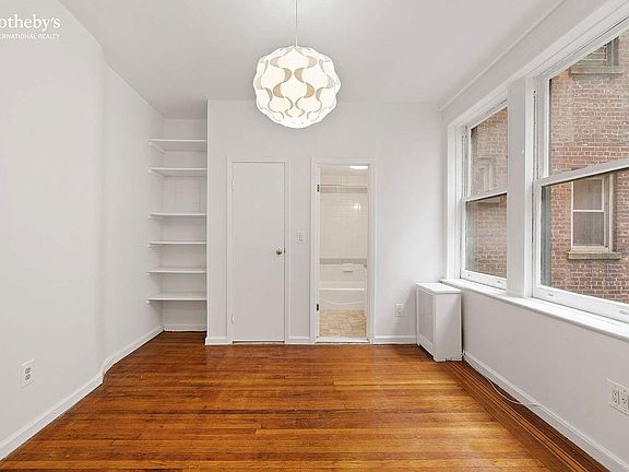 Facing West and away from the street, this home is filled with natural light and offers a stunning, up-close view of a historic church’s architecture. Classic pre-war details include a built-in bookcase, a spacious walk-in closet (plus a coat closet), and a dishwasher for modern convenience.