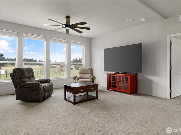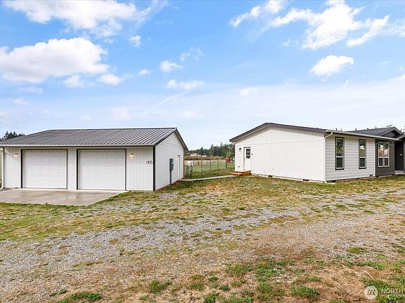 Bring your animals! This HOBBY FARM is fully fenced & cross fenced. It's fully equipped w/chicken coop, dog run w/insulated shelter, goat/sheep barn, water troughs, & 2 Tuff Sheds for feed or equipment storage. Get plants started early in the greenhouse w/raised beds, plus fruit trees for canning or pies. 2022 manufactured home offers modern living w/spacious kitchen featuring lg island, split-bedroom floorplan for privacy, & generous primary suite. Detached 2-car garage provides space for vehicles or workshop, & Graceland shed offers more room for hobbies/storage. Enjoy summer evening sunsets by the firepit on its charming brick patio. Includes private well & whole-home water filtration system. Country living near town & NAS Whidbey.