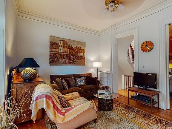 South End townhouse with street level one bedroom apartment. Owner's upper triplex with grand parlor level kitchen, dining & living level with original Victorian detail throughout; ornate plaster moldings, marble mantels and wood door & window casings. Beautiful formal dining room leads to custom kitchen with all stainless appliances & great storage. The living room is open & bright leading directly onto a large deck that enjoys Western exposure sunlight & has direct access to the garden & parking. The second floor bedroom level has two generous bedrooms with great closet space. The full bathroom is all tile with a deep soaking tub. The third floor opens to an inviting family room with a wall of windows & large skylight. The top floor bedroom is a private oasis with adjacent full bath with beautiful custom tile work & glass enclosed shower. The apartment has a private entrance & is ideal for home office, au pair or income. There is a full basement leading to the deep garden & parking.