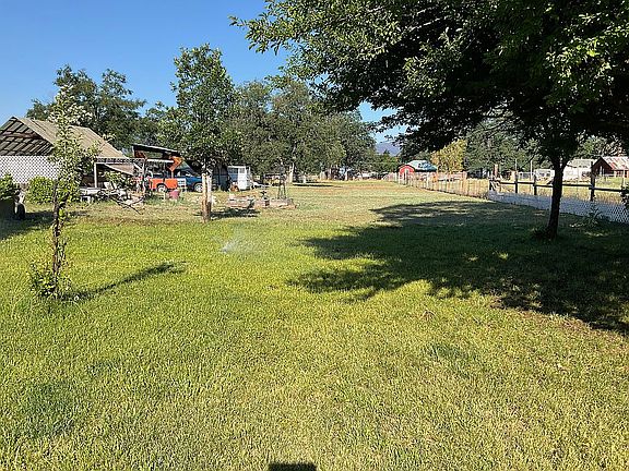 2.78 Acres, wood stove, electric heat, ( 24'x42') 2 car detached garage/ shop, Carport, horse barn. Green House. 1 shallow well , city water, garden area, fruit trees, grapes. Vertical Grain fir hardwood floors. Fenced x fenced. Directly across from Hayfork High School. Close to town and shopping. 2300 ft Elevation, mild climate and mountain clean air. Vertical Grain fir hardwood floors. Upstairs bonus room