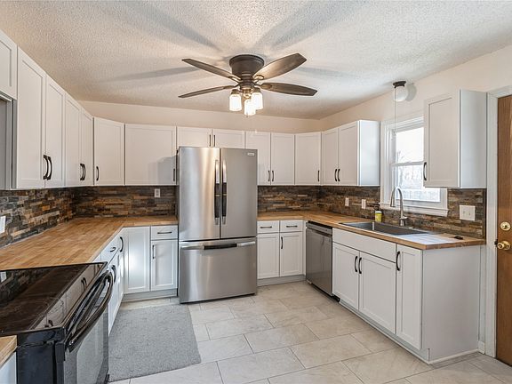 Welcome to this beautifully renovated 2-story home! Featuring 4 spacious bedrooms and 3 bathrooms, this home offers a perfect blend of comfort and style. The main level boasts stunning hardwood floors, an open living room and dining area, and a spacious kitchen ideal for entertaining. Enjoy the convenience of a bedroom on the main level, while the 2nd floor offers two additional bedrooms and a bathroom. The lower level is a standout with a gorgeous bathroom featuring floor-to-ceiling tile and in-floor heating and a 4th bedroom. Plus, there's plenty of potential for additional living space. Located near the PreK-12 schools and city park. Don't miss this incredible opportunity to own this home! All information obtained from Seller and public records.