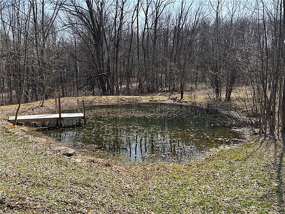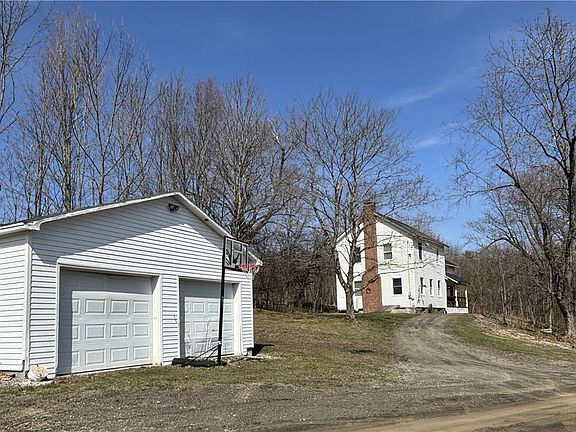 COUNTRY LIVING! Spacious colonial set on 4 acres at the end of a quiet, dead-end road. This 3-bedroom, 2-bath home offers a blend of open lawn and wooded areas, over a 6 ft pond stocked with goldfish and catfish, and plenty of room to roam. Enter into the tiled floor entrance with wood burning stove and a large mudroom with plenty of storage to the side. The kitchen features stainless steel appliances with tiled counters and backsplash, while the dining room boasts wood floors, beautiful built-ins, and a second staircase leading upstairs. The living room showcases hardwood floors, a working fireplace, and a pellet stove. The first floor also includes a full tile bathroom, separate laundry room with utility sink and storage. Upstairs, you'll find three bedrooms and a full bathroom. The spacious primary bedroom featuring a jetted tub, large walk in closet a separate stairwell leading to the downstairs and built in window A/C. There's also attic scuttle access and additional storage space. Outdoor living is just as impressive, with a deck overlooking the side yard and firepit, a large chicken coop that can accommodate up to 24+ chickens with attached run, large garden and playhouse. There are 2 additional sheds for storage and a firewood shed by the 2 car garage including dog kennels and workbenches. Follow the path down to the pond with dock and relax by the water or take dip to cool off. There is a shooting range already in place. Whether you're looking to garden, relax by the pond, or entertain on the deck, this property offers space, charm, and versatility in a peaceful setting.