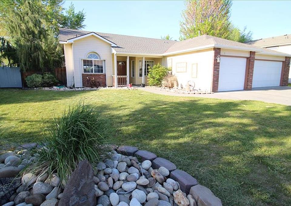 Gorgeous home in a very desirable neighborhood close to North Elementary and Legacy Park. Open floor plan with a vaulted great room with beautiful wood floors, and views to the established lawn and covered patio from all the large windows. Kitchen features a breakfast bar and great storage and counter space. Secret storage built-in near the gas fireplace. The Master suite has access to the patio, walk-in closet, potty room, dual vanities, and a great soaking tub. 3 varieties of fruit trees!