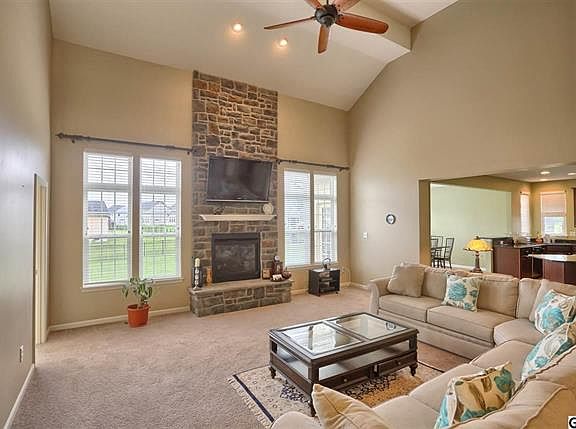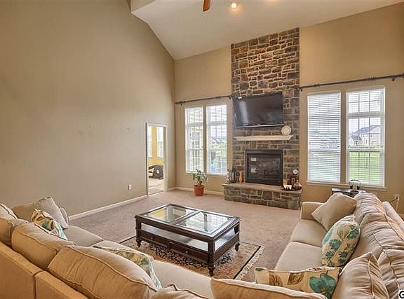 Stunning brick front home in sought after Rivendell. Over 3800+sq ft in this spacious home plan situated on .72 acre fenced lot w/ lush landscape. Granite kitchen w/oversized island, SS appl & walk-in pantry. Grand 2 story great room w/gas FP stone to ceiling. Owners' suite w/tray ceiling & luxury ceramic bath. 1st flr office & laundry. Side entry 3 car garage. HOA includes pool & club house