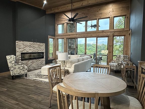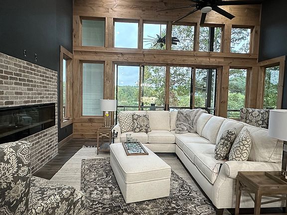 Mountain Modern CREEKFRONT cabin located within 5 min of Downtown Blue Ridge! Sleek, bold accents meeting modern rustic design creates the ultimate cabin for the most discerning buyer! Open great room w windows galore allow you to savor every sunrise, soaring ceilings, lavish stone fireplace, massive wood beam accents & the best in lighting & finishes! Combination of wood, stone & drywall add just the right amount of texture! The main level boasts 2 master bedrooms, a butler's pantry, tile walk-in shower & great closet space. Main level deck will feel like part of the living space as the two combine giving it the most adequate entertainment area alongside the outdoor fireplace. The terrace level features stained concrete flooring, wet bar, rec/bonus area as well as 2 more bedrooms & baths. Again, the outdoors will be incorporated in to the space allowing you the ability to enjoy your useable creekfront acreage! Easy access, private lot, SHORT TERM RENTALS ARE ALLOWED & HIGH SPEED INTERNET AVAILABLE! COMES FURNISHED!