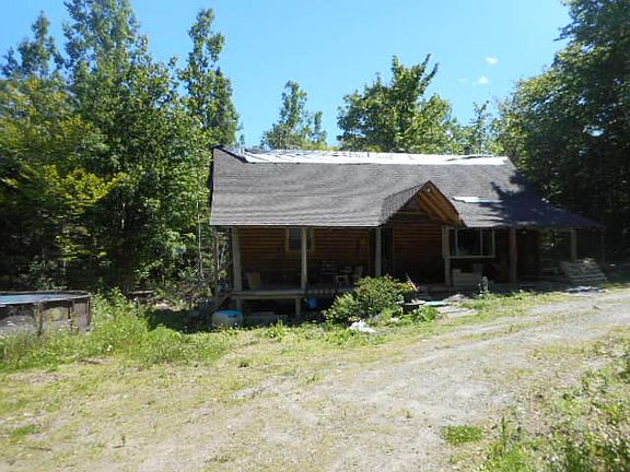 Off Grid year round Log Cabin! Well and Septic and Generator. Live off Grid with this comfortable Log Cabin sitting on 7.9 Acres of land. Camp has a coal fired stove for heat, Farmer's Porch and a few out buildings. Camp also has 4 solar panels that just need new batteries. Camp has Ice and water shield on the roof at this time and needs to be shingled.
