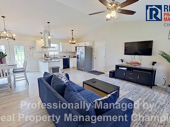 This charming 3 BD/2 BA home is filled with updates. The main living area has an open layout with vaulted ceiling and beautiful wood-like LVP flooring that flows seamlessly throughout. The kitchen offers a pretty workspace with granite counters, subway tile backsplash, upscale stainless-steel hood and upgraded light fixtures. There is access from the dining room to the patio and back yard. The bedrooms are located down a quiet hallway. The master includes two closets and a private bath with single sink vanity and matching mirror. Two guest rooms and a second full bath complete the floor plan. Additional features include an attached one-car garage with washer and dryer hookups, and a large yard. Conveniently located near MCAS New River and a quick drive to Surf City and Topsail Beaches. We are an Equal Housing Opportunity Management Company and abide by the term of the Federal Fair Housing Act. No Cats. Dogs allowed with prior approval and required pet fees. Aggressive breed list may apply. Contact listing agent prior to submitting application. No Smoking, e-cigarettes or vaping. All applicants over 18 years of age are subject to a background check, including criminal, credit, employment verification, and past tenancy.